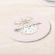 Chic Blush Pink White Dots Bow Ornament Christmas Round Paper Coaster