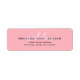 This address label features a pastel pink background with a clean and elegant layout. The name is highlighted in bold black uppercase text, layered over a soft white and pink script font for a stylish contrast. Below, the address details are neatly centered in a simple sans-serif font, keeping the design clear and easy to read. The overall look is modern, feminine, and professional.