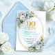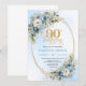 Chic Bohemian Blue Floral Greenery 90th Birthday Invitation