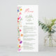 Add a touch of bohemian elegance to your wedding dinner with this Modern Chic Boho Bright Elegant Colorful wild flowers wedding menu. Featuring pink, red, green, and purple hues botanical flowers inspired by wildflowers and watercolor rustic gardens with subtle greenery and modern boho script typography. With elegant modern script typography, perfect for causal , outdoors garden weddings.