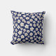 Chic Boho Daisies Dark Blue Pattern Throw Pillow