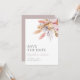 This chic save-the-date wedding announcement features an elegant boho floral theme with muted earth-tone colors. Customize text on the front and back with all your wedding details.