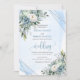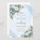 Chic Boho Pastel Blue Silver Flowers Wedding Invitation