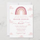 Chic Boho Rainbow and Clouds Pastel Pink Birthday Invitation