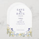 Chic boho simple wildflowers Wedding Save the Date with blue calligraphy