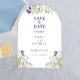 Chic boho simple wildflowers Wedding Save the Date with blue calligraphy