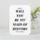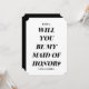 Modern and minimalist bridesmaid proposal card featuring the text "Will You Be My Maid of Honor?" in bold chic typography on the front and placeholders for your details in matching lettering. Cards reverse to a text placeholder for your message in handwriting script.