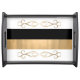 Elegant black serving tray done in a bold, modern, white, black and gold striped pattern, with graphics of gold tone scroll decorations. Customize this lovely tray with your own text. Great for gift giving too.