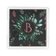 This exquisite botanical design features lush watercolor greenery and deep wine-red leaves accented with gold details, set against a bold black background. The centerpiece features a customizable monogram in soft blush pink encircled by a delicate gold frame.