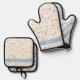 Chic Bow Blue Floral Elegance Pattern Oven Mitt & Pot Holder Set