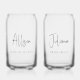 Elevate your bridal party's toasts with our unique set of 2 personalized stemless can glass keepsake gifts for your bridesmaids and maid of honor to enjoy and raise a toast with at your engagement party, bridal shower, bachelorette party, rehearsal dinner and wedding reception. These chic wine glasses will add a touch of fun to each event and can be personalized with the name of your maid of honor, bridesmaids, mother, sisters, and more, in a stylish calligraphy script and their role in elegant serif typography.