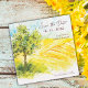 Chic Bright Yellow Farmland Landscape Wedding Announcement