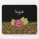 Chic Brown Gold Leopard Print Red Rose With Name Mouse Pad