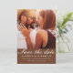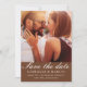 Chic brown and white one photo wedding save the date announcement. Please view this elegant wedding collection for beautiful coordinating wedding invitations, and additional modern color options.