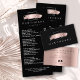 Chic Brush Stroke Salon Price List Services Menu - Modern, elegant, and minimalist, chic faux rose gold brush stroke, black hair salon price list and service menu trifold brochure. Customize this chic and simple price menu brochure to elegantly display your professional services to your customers and clients. Personalize with your monogram name, as well as business details, social medial handle, service descriptions and price details in a trendy white typography. Colors and fonts are fully editable to suit your needs. Change/remove social media icons as required. This is a simple and elegant choice for hair salon owners, hair stylists, makeup artists, estheticians, lash extension artists, beauty spas, massage therapists, and other health and beauty entrepreneur professionals.