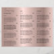 Chic Brush Stroke Salon Price List Services Menu - Modern, elegant, and minimalist, chic faux rose gold brush stroke, black hair salon price list and service menu trifold brochure. Customize this chic and simple price menu brochure to elegantly display your professional services to your customers and clients. Personalize with your monogram name, as well as business details, social medial handle, service descriptions and price details in a trendy typography. Colors and fonts are fully editable to suit your needs. Change/remove social media icons as required. This is a simple and elegant choice for hair salon owners, hair stylists, makeup artists, estheticians, lash extension artists, beauty spas, massage therapists, and other health and beauty entrepreneur professionals.