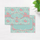 Aqua, pink, and white damask print with sweet polka dot Easter bunnies and 3D-look tag and gingham check trim Easter gift tag.