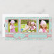 Aqua, pink, and white damask print with sweet polka dot Easter bunnies and 3D-look tag and gingham check trim Easter photo card.