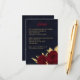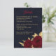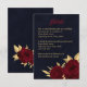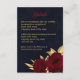 Chic and elegant navy wedding details enclosure card featuring beautiful burgundy flowers and some elegant gold leaves.