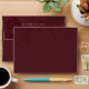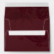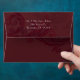 Lovely wedding thank you card envelope done in burgundy, with lovely swirl flourishes in wine and dark maroon, on the outside and inside of the envelope. Light gray text return address, on the back flap, is fully customizable and ready to personalize with your information.
