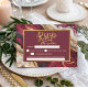 Complete your wedding suite with this stylish burgundy and gold RSVP card, featuring a luxurious agate marble background and a refined gold frame. Designed for modern weddings, this chic and sophisticated response card allows your guests to RSVP in style. A perfect blend of elegance and glamour, it sets the tone for an unforgettable celebration.