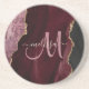 Chic Burgundy Gold Agate Script Custom Monogram Coaster