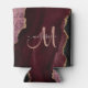 Chic Burgundy Gold Glitter Agate Custom Monogram Can Cooler
