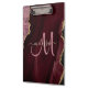 Chic Burgundy Gold Glitter Agate Custom Monogram Clipboard