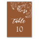 Chic Burnt Orange Wildflowers Terracotta Wedding Table Number
