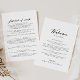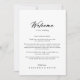 This chic calligraphy elegant wedding welcome letter is perfect for a rustic wedding. The simple and elegant design features classic and fancy script typography in black and white.
