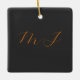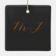 Chic calligraphy grey orange monogram name initial ceramic ornament