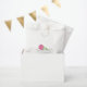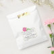 Trendy and elegant candy bar favor bag with graphics of a gold tone decorative frame around custom black text. A single pink watercolor painted peony flower decorates the top of the frame. Personalize the text for wedding event. Great for candy, popcorn, and dessert bars.
