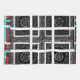 Make a bold, sophisticated statement with the Chic Checkered Black, White & Red Graphics Art Design motif. This design is built around a complex, symmetrical black and white checkered core featuring intricate geometric and repeated mandala-style elements. The powerful visual impact is amplified by the border, which uses striking red and cyan/blue graphical lines to create an arresting, multi-layered, and almost optical illusion effect. This high-contrast, modern graphic art design is perfectly suited for sophisticated merchandise, including high-end apparel, sleek home goods, and contemporary accessories.
