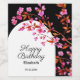 Elegant cherry blossom flower and white arch frame with vibrant typography on a black background birthday wine label.