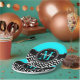 Elegant aqua and black chevron pattern with the birthday girl's name and monogram at the center.