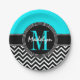 Chic Chevron Bright Aqua Birthday Monogram Paper Plates