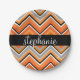Chic Chevron Pattern Black Gray Orange with Name Paper Plates