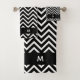 Chic Chevron Pattern on Black White Monogrammed Bath Towel Set