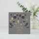 Black and gold Christmas tree ornaments, holly and berries on a grey background highlight these holiday party invitations with your details in chic lettering. Perfect for your personal or business holiday parties. Order INSTANT DOWNLOAD and/or PRINTED party invitations. **SQUARE SIZE requires extra postage - mail in an A7 (5" x 7") envelope at no extra postage.