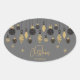 Black and gold Christmas tree ornaments and snowflakes on a grey background highlight these oval holiday stickers with your name and Merry Christmas in chic lettering. Perfect for your personal or business holiday parties. MATCHING items in our collection.