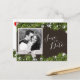 Chic Christmas Photo Save the Date with Christmas Greens, Wedding Bouquet and Silver Ornaments