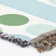 A quality printed throw has its advantages. This is a much finer weave throw than its loopier cousins, and though lighter, it is worth the investment for custom room accessorizing. The back is much prettier than the typical brown, and the fringe on the long sides very vivid, the selvage nicely done. Before photographing, I washed the throw in cold water, delicate, with a thicker woven throw the same size. On tumble dry low, this throw was dry in half the time as the other. This is a very practical quality if you use throws for furniture covers or to wrap up in frequently. The sleekness of the fabric makes it a great layer for accenting or protecting without the feeling of sitting on too much stuff. Perfect for napping or when you feel a light chill coming on. The color printing is beautiful and on this fabric, matched the design and color of my Photoshop image. This is an advantage for blending room fabrics and colors. The fringe on the short sides prints the colors from the design image and therefore varies from the side fringe. I streaked a white fractal line through the plaid pattern to give the illusion of weaving. This printed as crisp as an illusory thread, and put some white in the short side fringe, showing another advantage of print vs loomed- for artistic purposes, line lines, detail, and color integrity can be planned and preserved. My loomed throws have color limitations and more of a needlepoint texture. Print throws reproduce an exact image. The throw felt a little stiff straight out of the package, but this went away in the first delicate wash. Of course I searched the wash water for ink or bleeding and there was none.