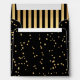A stylish envelope showcasing a gold and black design, decorated with confetti and accented by gold stripes on a black interior. The front has a label image, that you can keep as it is, drag, rotate or delete. This envelope is beautiful to match wedding invitations and can also be used for Christmas or other situations.