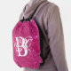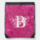 Add personalized style to your wardrobe accessories with a custom-made backpack. Chic Cool Pink Glitter White Initial Monogram Custom Drawstring Backpack. Personalize with your own initial. Great gift idea.