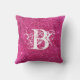 Chic Cool Pink Glitter White Initial Monogram Throw Pillow