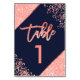 Chic coral typography on customizable navy blue coral glitter color block, and faux coral foil geometric stripes chic table number wedding , perfect for elegant, beach wedding,