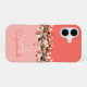This chic phone case features a two shade coral background with matching leafy branches separating top and bottom. The lower half has name and initial letter monogram template text. Personalize the text fields with a name and initial, remove both or one or the text edit using the design tool to select a font style, size, and color you like.