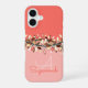 Chic Coral Ombre Custom Monogram Leafy Branches iPhone Case