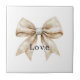 Chic Cream Silver Glam Bow Love Ceramic Tile