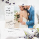 Simply Chic. This stylish, modern wedding thank you card template has a bright, clean and fresh design featuring a semi-transparent overlay for your text on the left portion of your photo, lending a feeling of flow. To add to that effect, depending on the length of your first names, one or both might 'overflow' onto the photo as in this example! So you can experiment with which name you put first and see how each version looks. We've chosen standard sharp corners as the default card shape, but you can easily change that to rounded corners, as that look also works very well with this design. So check both looks and see which one grabs you! The default text color on the front is black and on the back it's a gray tone, but you can change this, and you can also change the font. We've set the background on the back as transparent, so that the color of the paper simply serves as the base color. You can change this and choose a color for the base if you prefer. We've put some sample text on the back for you to replace with your own message as you see fit, but please don't feel restricted by this. If you prefer delete our sample text entirely and keep the back totally blank so that you can write a handwritten note on each card instead, you can do that. Or you might want to replace our text with your own message of gratitude and your own closing and then hand sign your names when you receive the cards. You can also change the font. The default paper type, matte, has a soft warmth to it and resists smudging, so it's a great choice for writing your own message. You can edit this and choose semi-gloss or another paper type instead. Just please be sure in any event to delete our sample/placeholder text on both sides of the card, and please remember to replace the placeholder photo on the front with your own. Use the intuitive design tools, your favorite photo and your inspiration and make this stylish wedding thank you card uniquely yours. And please browse our wedding thank you collection for more simply elegant modern wedding thank you card motifs, in postcard and folded card formats, too! Use the intuitive design tools, your favorite photo and your inspiration to customize this elegant wedding thank you card and make it uniquely yours. And please browse our shop for a selection of other stylish modern wedding thank you flat cards, as well as postcards and magnets!